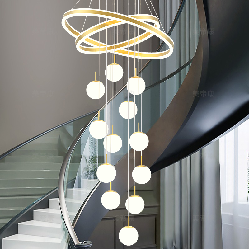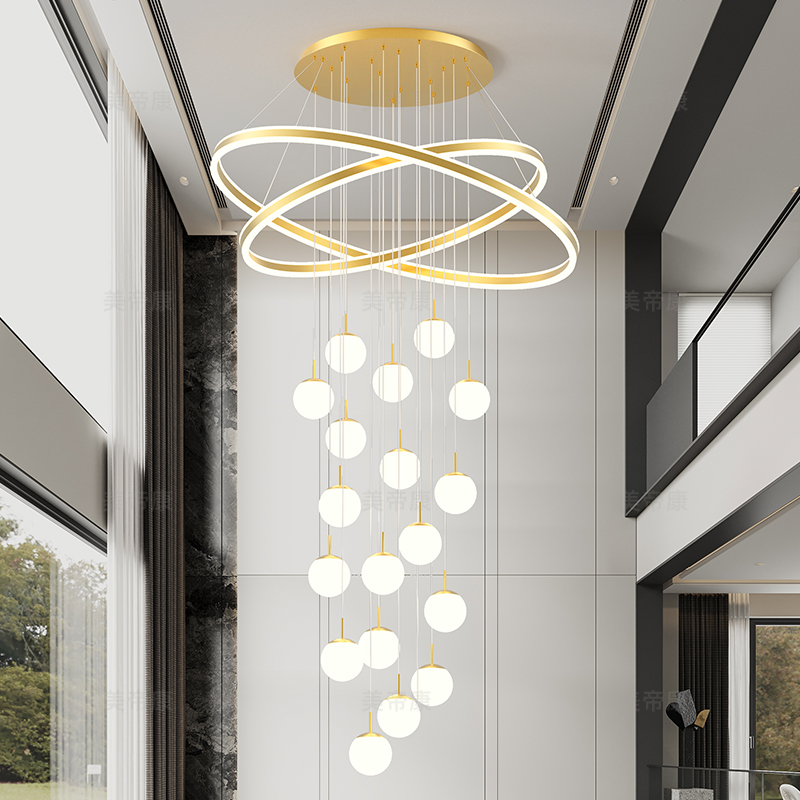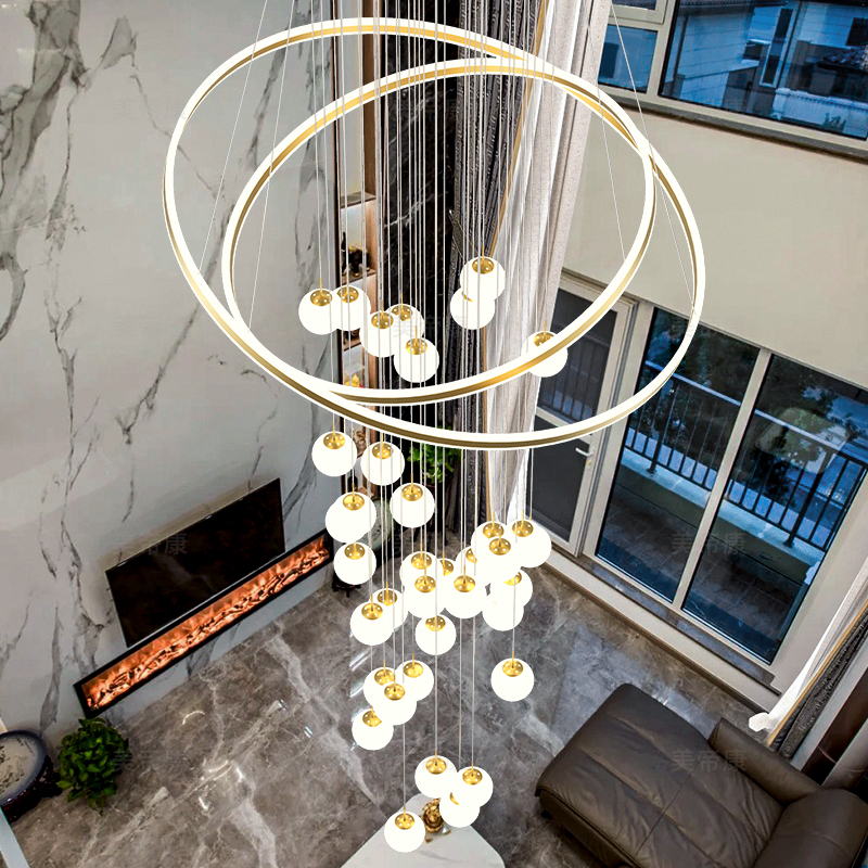 复式楼别墅挑空客厅大吊灯现代轻奢loft跃层楼梯灯挑高楼中楼大灯