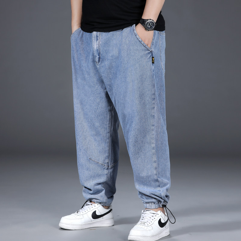 秋冬款九分牛仔裤男宽松阔腿加肥加大码胖子肥佬9分裤简约百搭潮