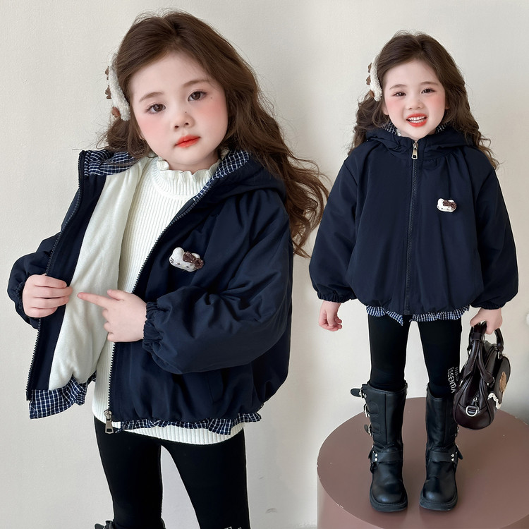 女童加绒外套冬季2025新款洋气宝宝保暖棉服炸街冬装儿童加厚棉衣