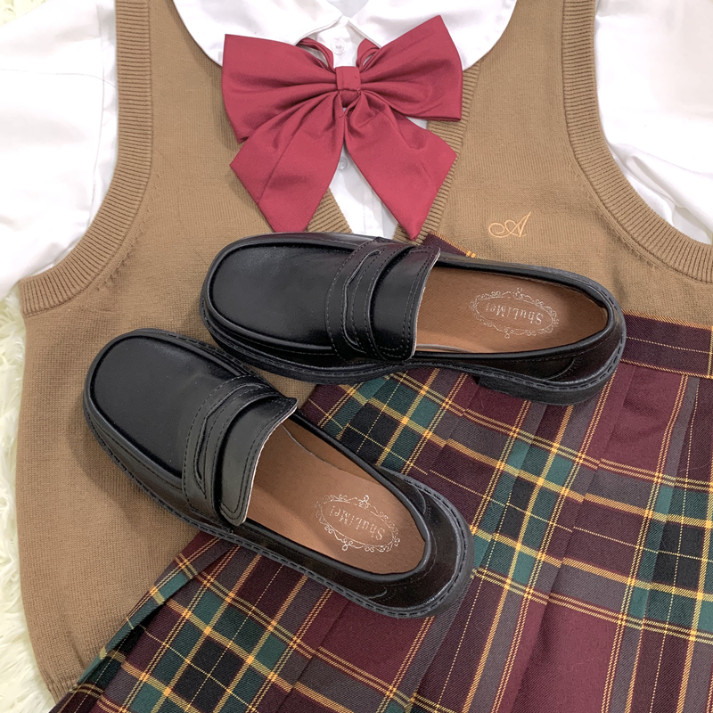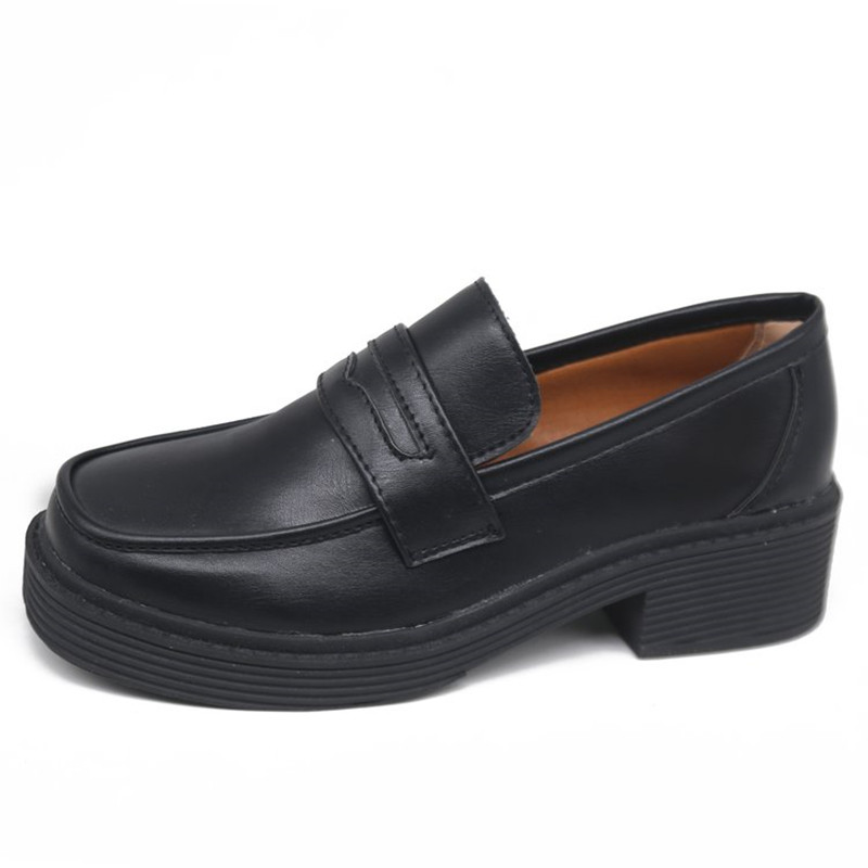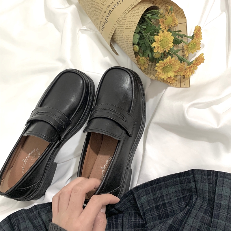 新款中跟复古基础款jk制服乐福鞋
