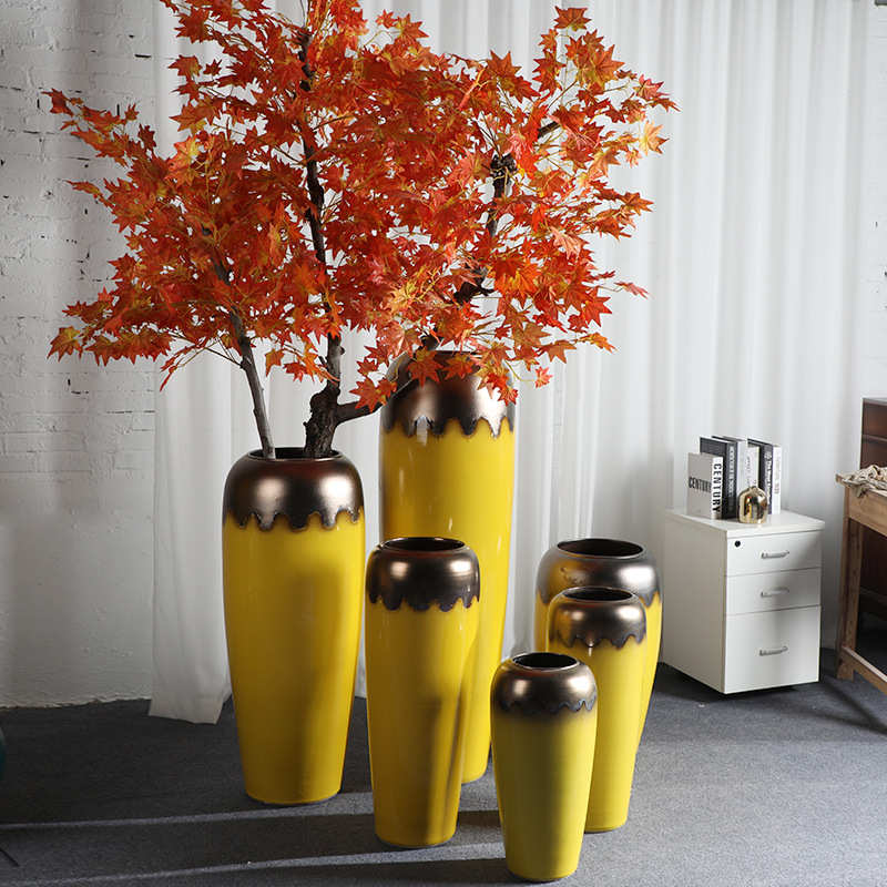 景德镇陶瓷花瓶落地大客厅干花花瓶摆件轻奢北欧黄色现代简约摆设