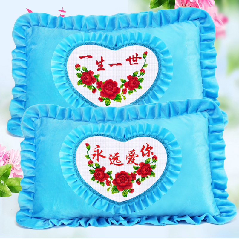 自己绣十字绣枕头结婚抱枕送礼情侣枕套卧室创意喜庆单人枕一对