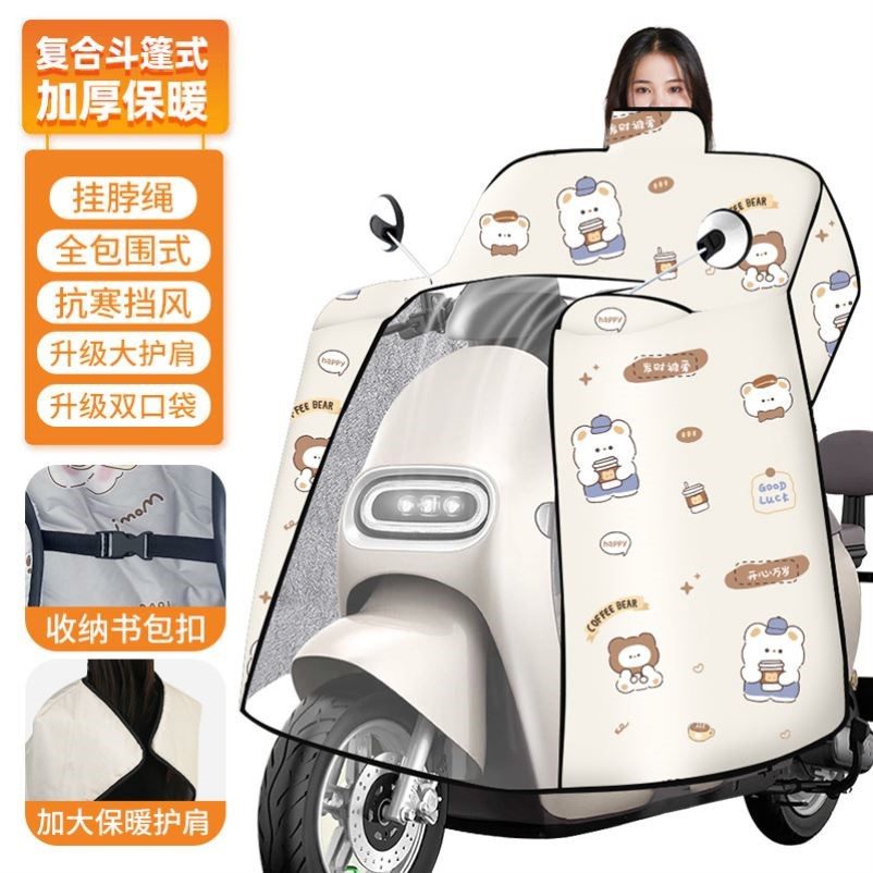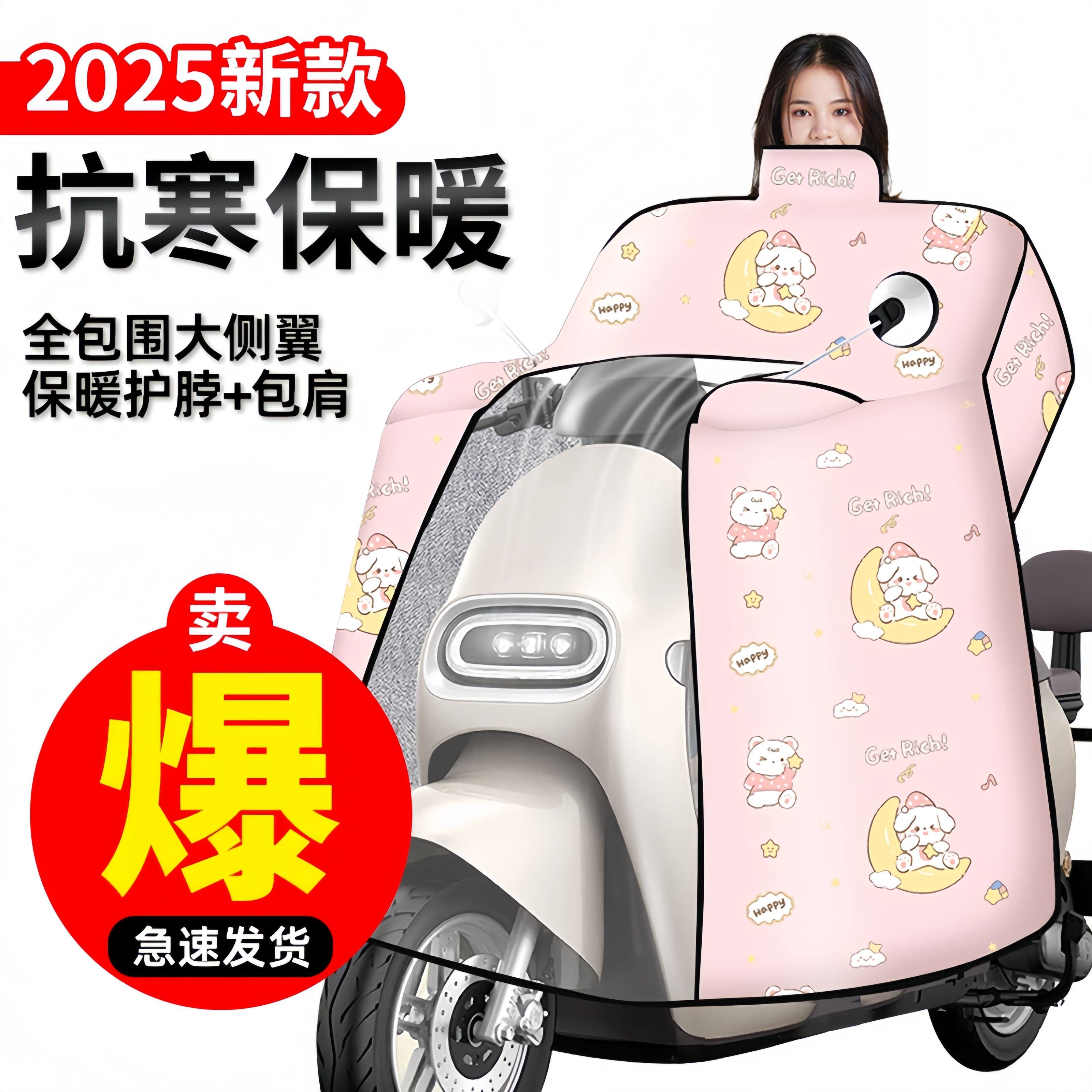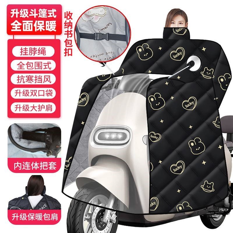 电动车挡风被冬季全包斗篷式加绒加厚电瓶摩托车防风防水罩26新款