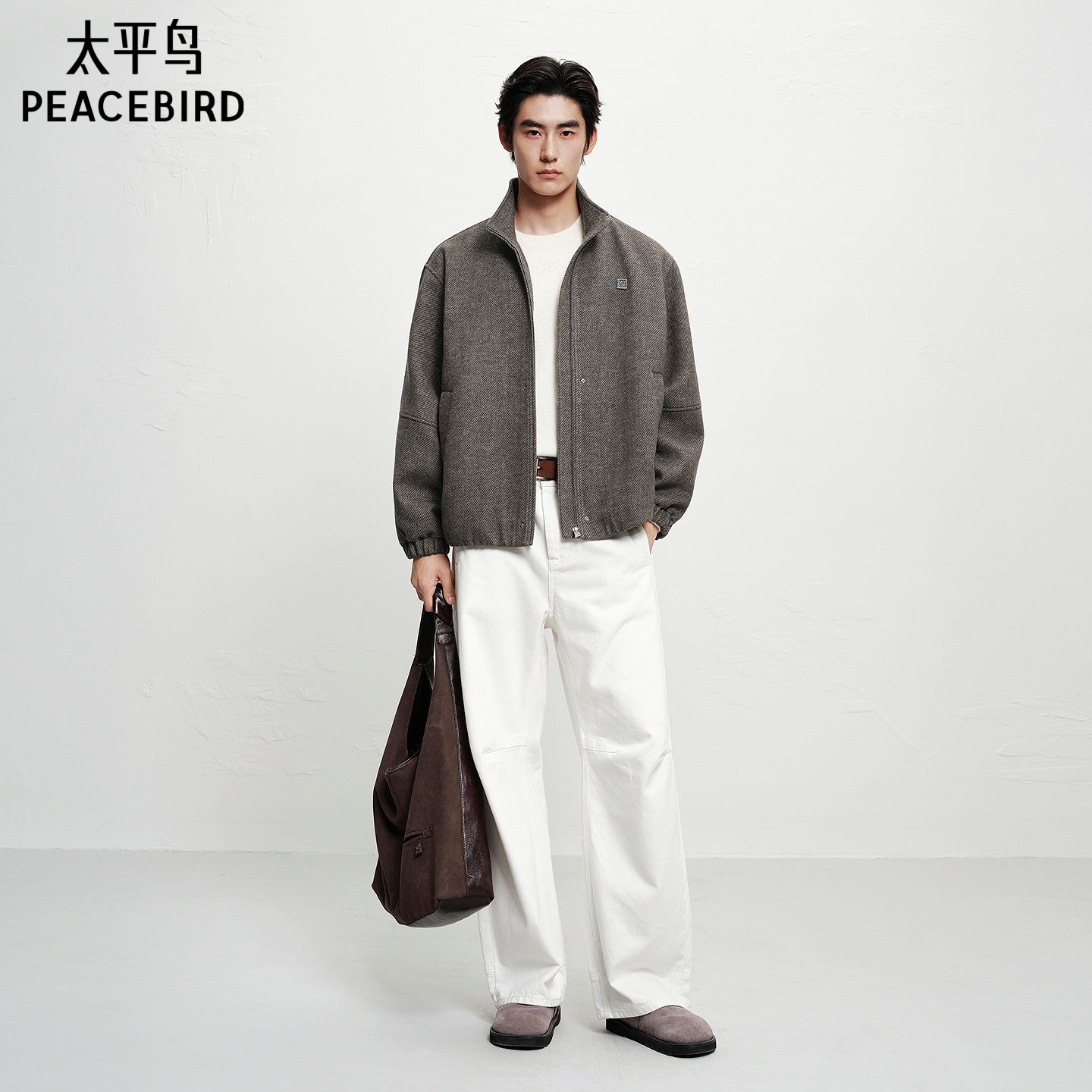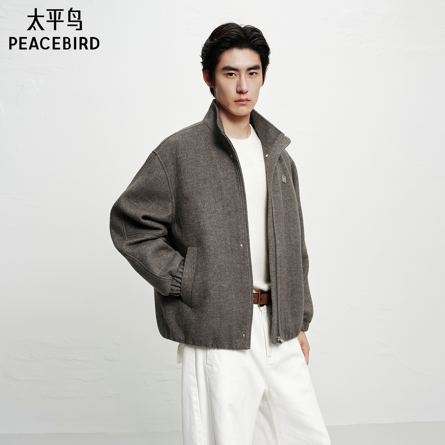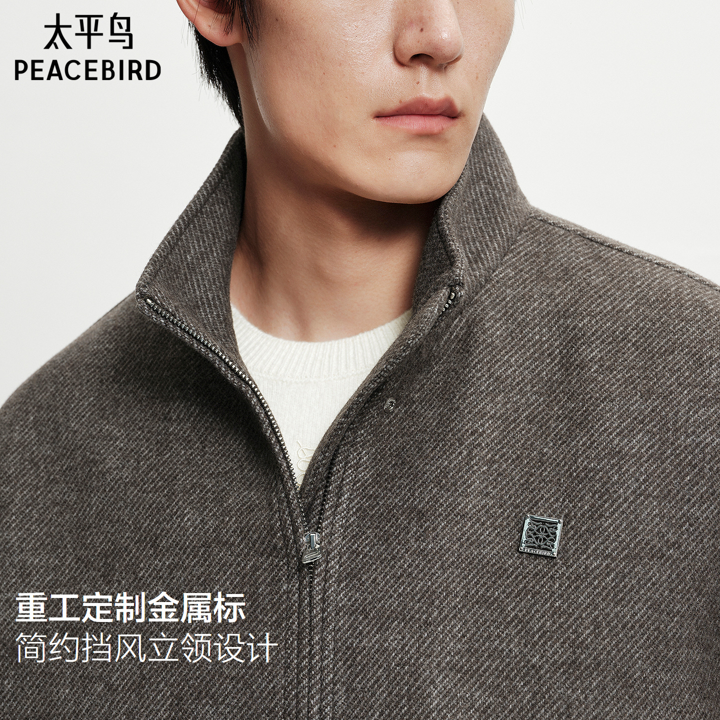 【保暖羊毛】太平鸟男装立领毛呢行政夹克冬新款通勤茄克休闲外套