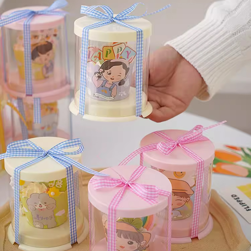 新款六一儿童节卡通纸杯蛋糕装饰生日蛋糕盒2寸圆包装盒