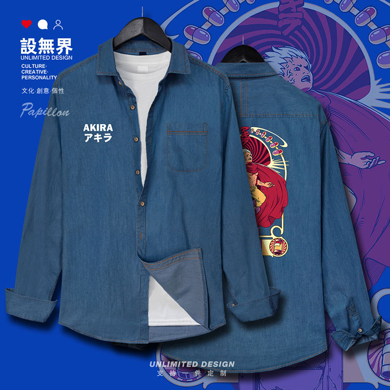 阿基拉金田岛铁雄经典动漫牛仔衬衫男女长袖潮牛仔衫0002设 无界