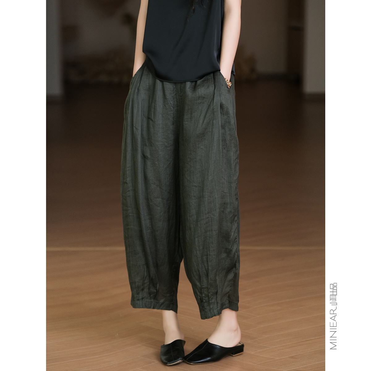 小耳出品【西野暮色】100支细苎麻纯色休闲萝卜裤 简约宽松阔腿裤