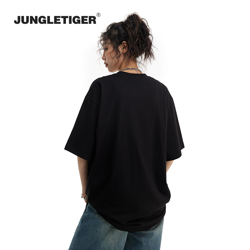 丛林老虎胸前小标logo印花短袖男女2025夏季潮牌美式街头重磅t恤