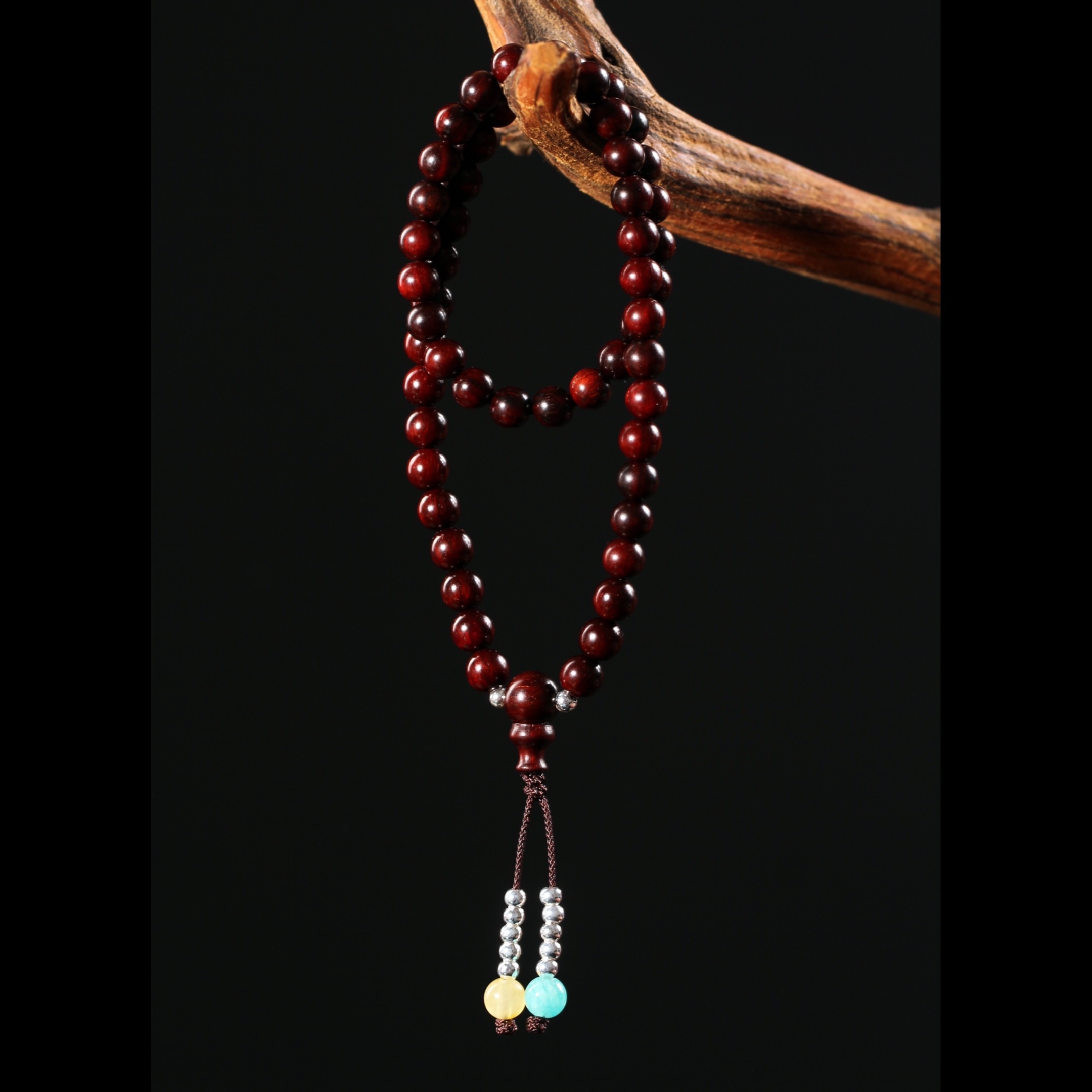 【壮的响亮】青黄 高密老料 双圈印度小叶紫檀念珠流珠手串