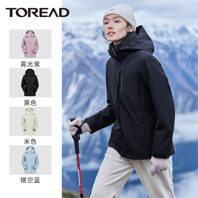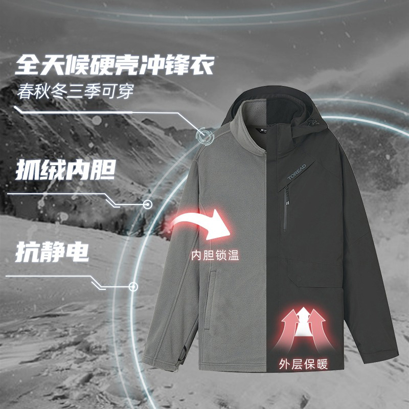 探路者冲锋衣男三合一可拆卸户外加绒防泼水防风衣登山服外套女