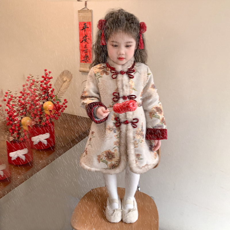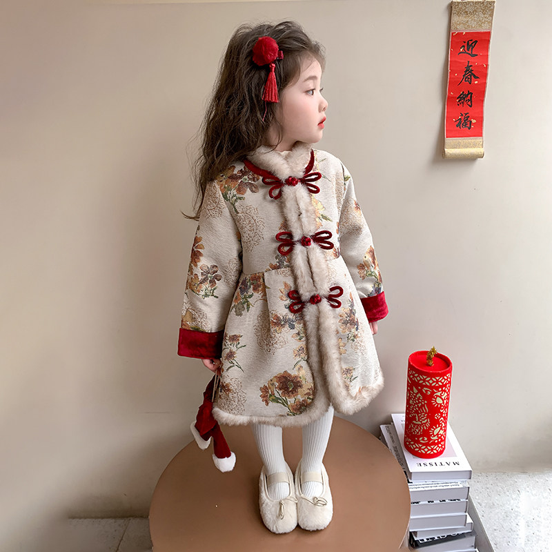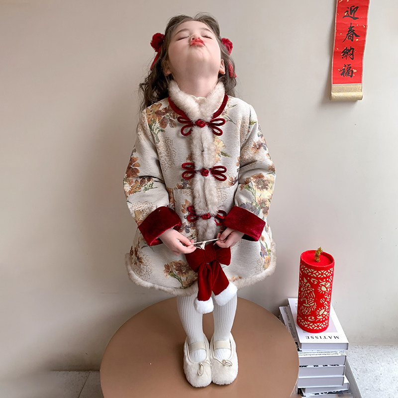 拜年服女童新中式冬装唐装棉服外套夹棉加厚国风宝宝儿童过年衣服