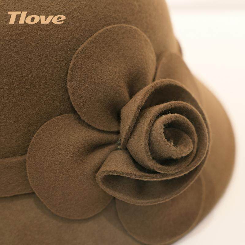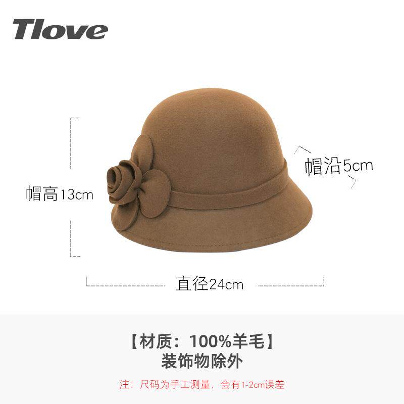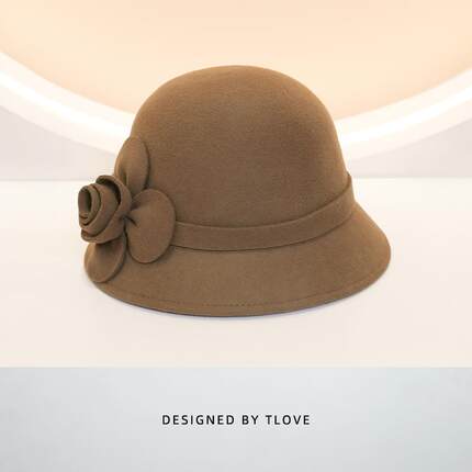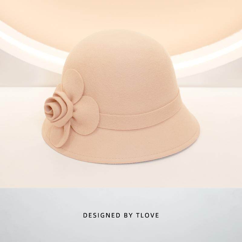 9705时尚百搭渔夫帽秋冬季新款保暖羊毛帽子女士优雅复古花朵盆帽