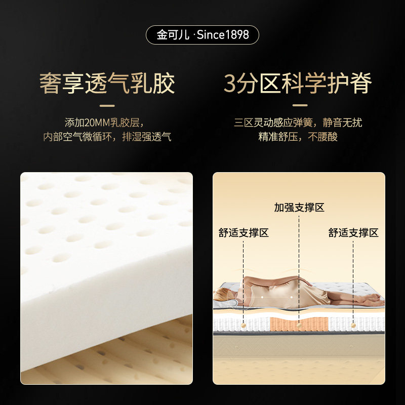 政府补贴 | 金可儿偏硬护脊乳胶弹簧床垫 防螨抗菌席梦思 匠壹