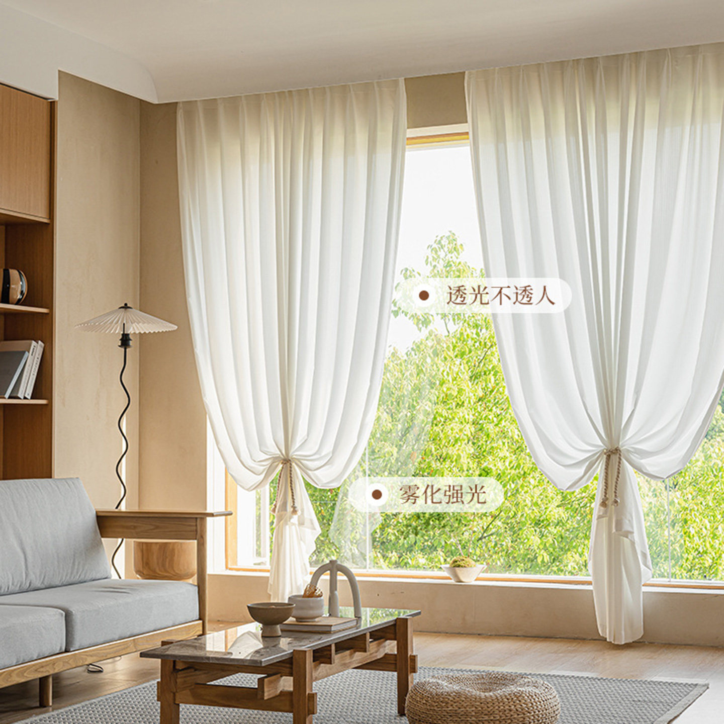 幻影纱窗帘纱帘遮光防晒窗纱客厅阳台遮阳2025新款透光不透人白沙