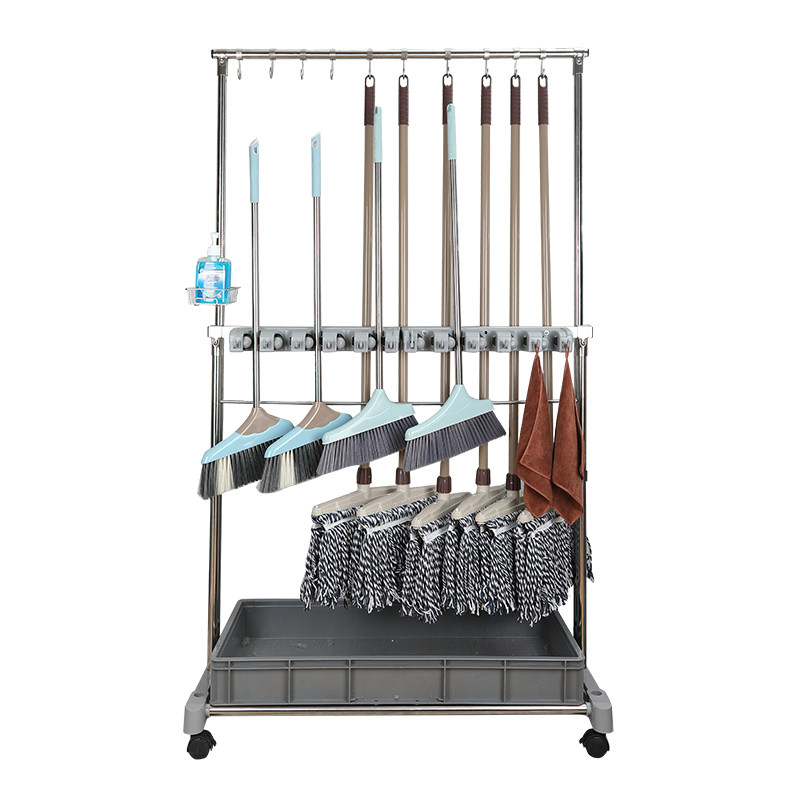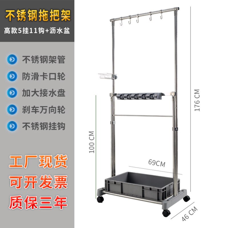 拖把架落地式挂钩墩布收纳清洁卡夹扫把架子可移动不锈钢拖把挂架