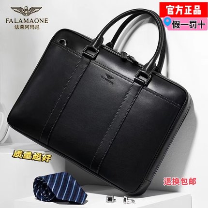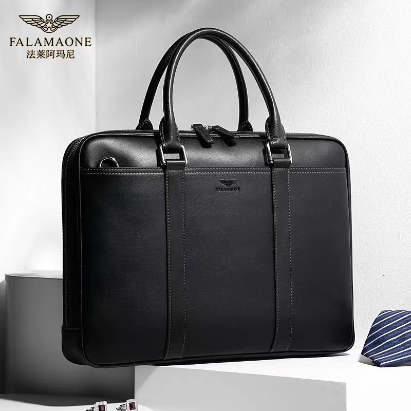 法莱阿玛尼男士手提包真皮商务横款电脑包大容量休闲男包公文包潮