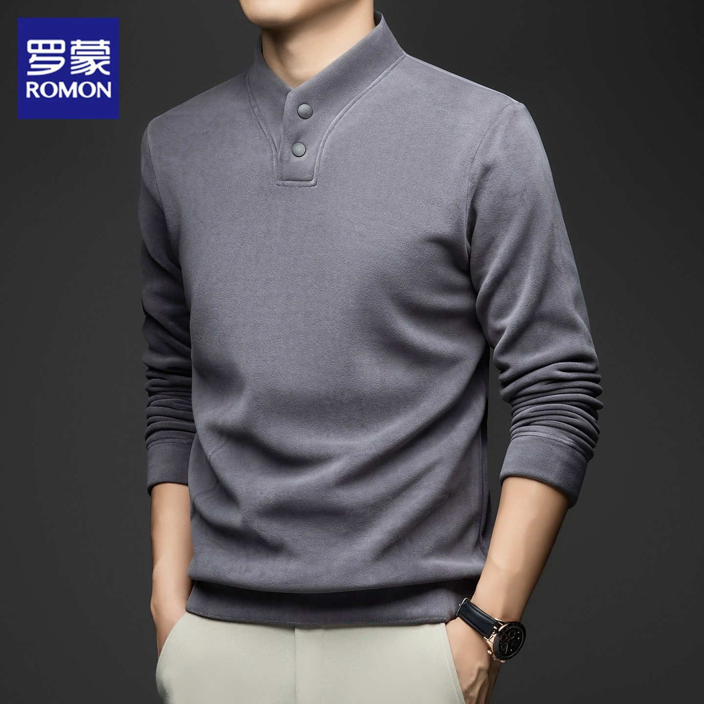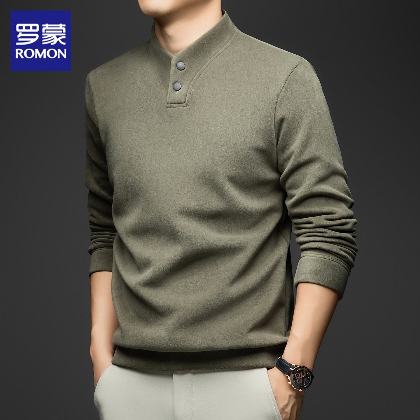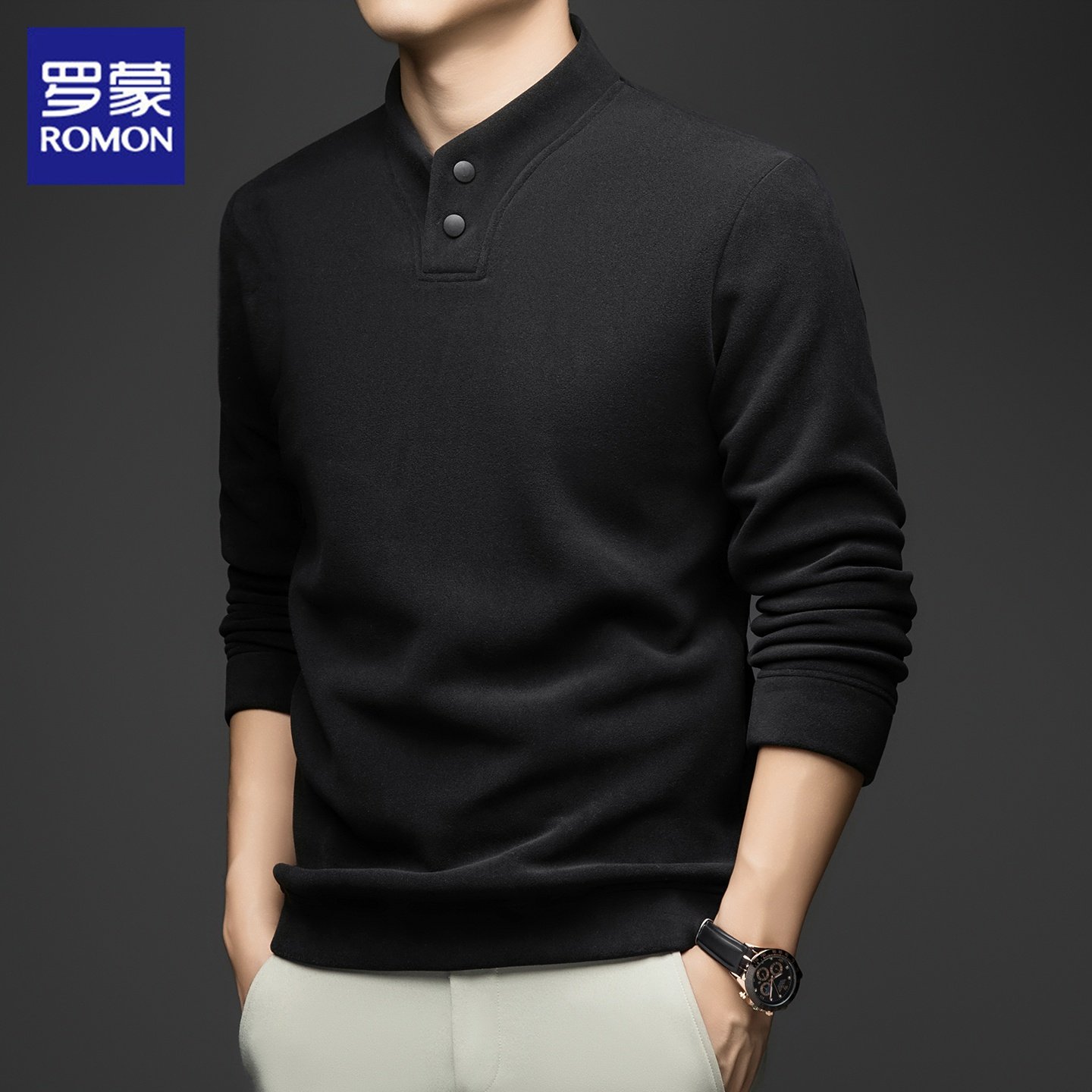 罗蒙卫衣男士冬季新款加绒加厚德绒打底衫休闲百搭v领长袖t恤男款