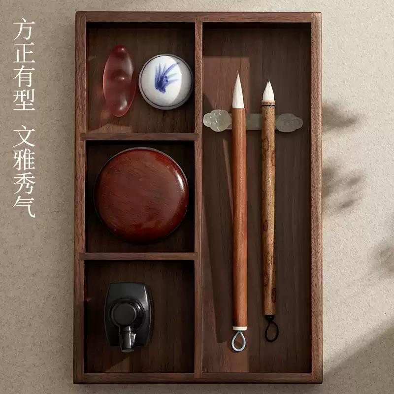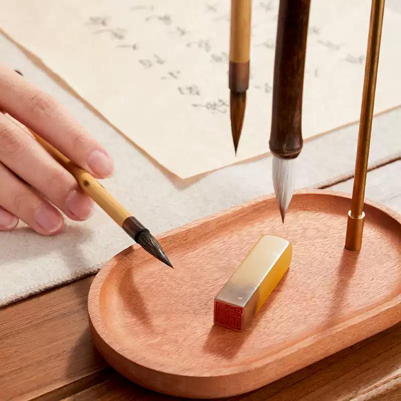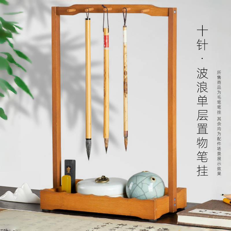 新中式毛笔笔挂文房四宝书法专用笔架清林实木铜针架子古风创意办