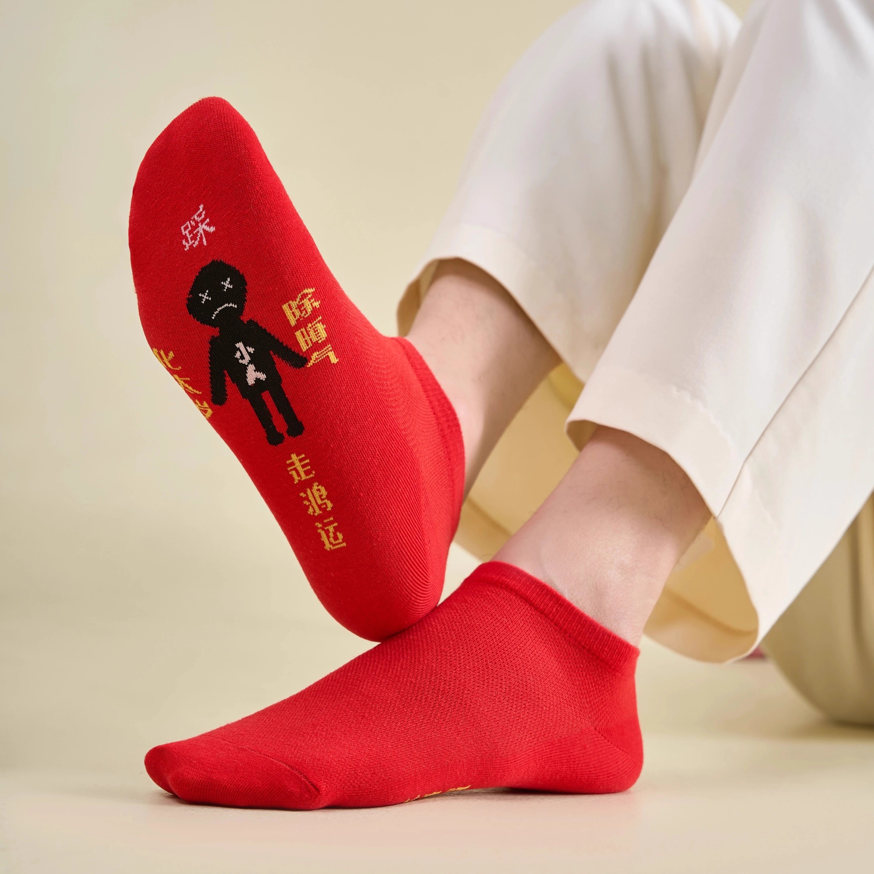 本命年红袜子小人纯棉踩女长筒短袜秋冬防马蛇年小ren男士船袜26