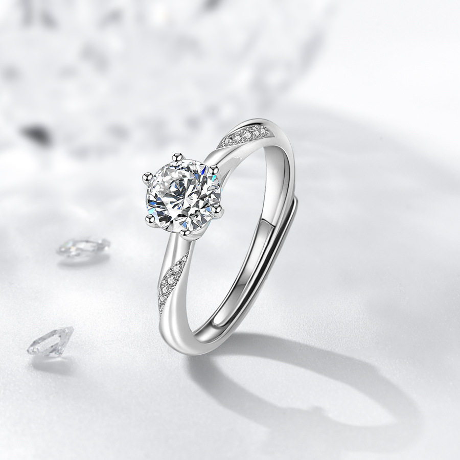 纯银女戒指情侣通灵六爪对戒女款