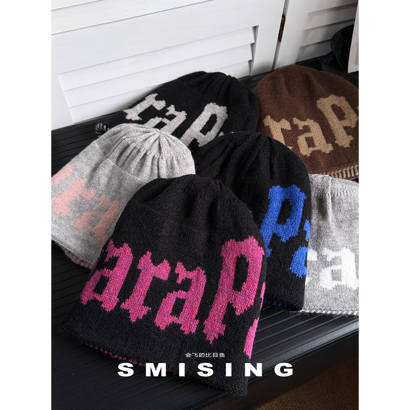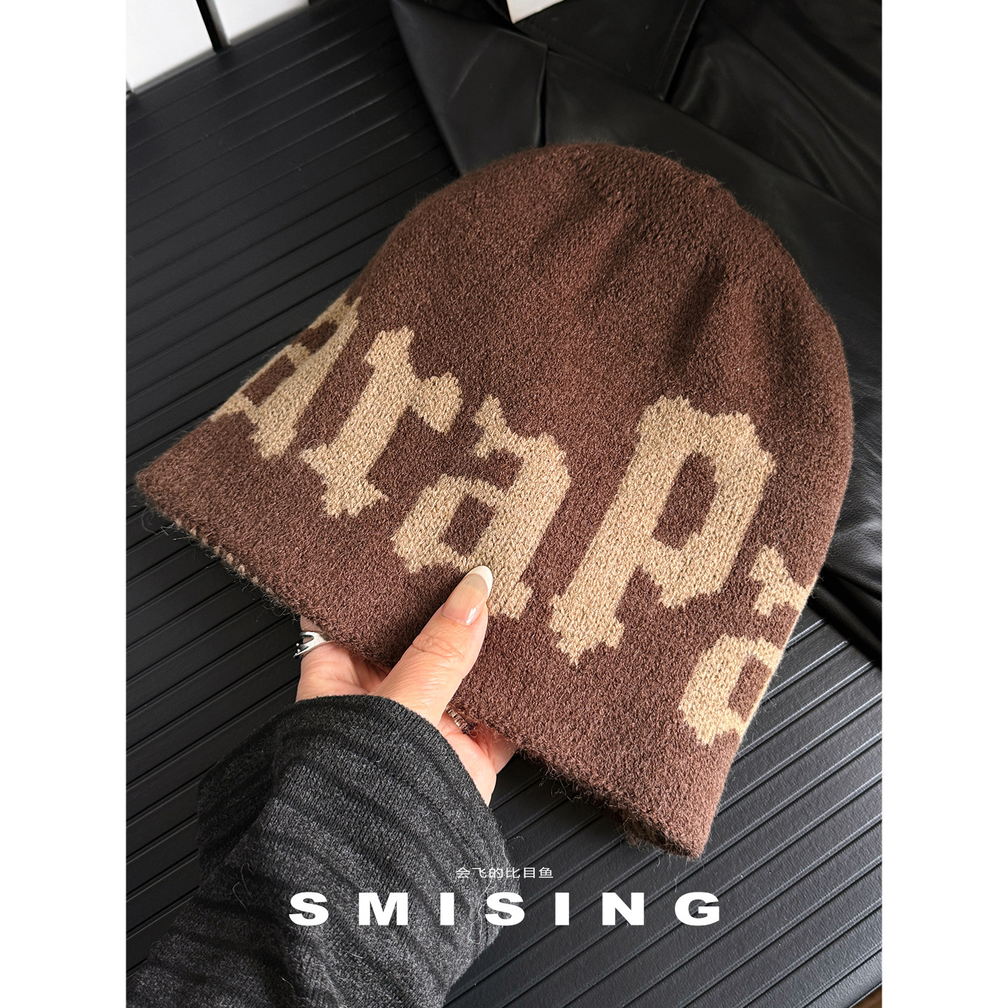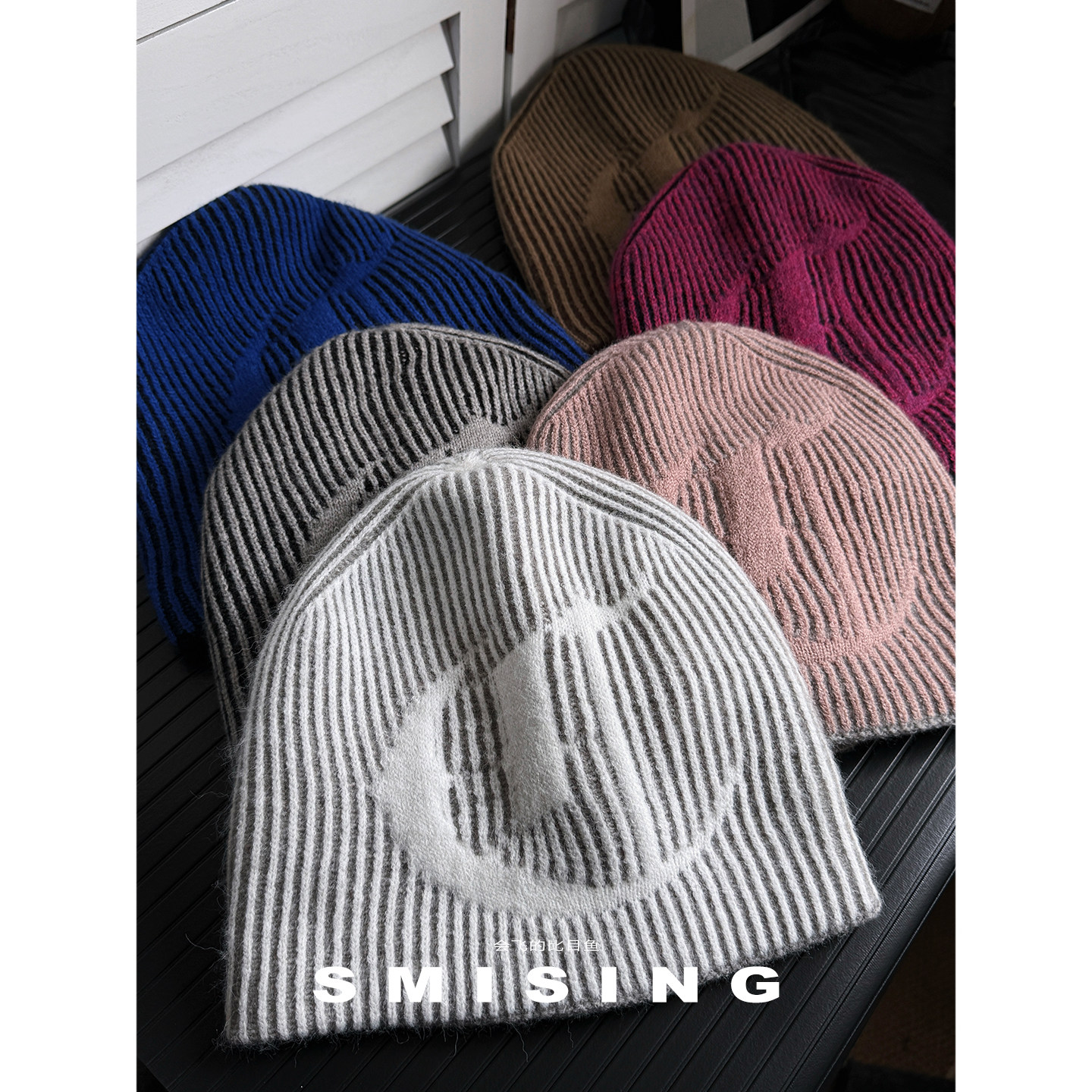 美式复古双面条纹针织套头帽子男女秋冬保暖毛线冷帽时尚显脸小潮