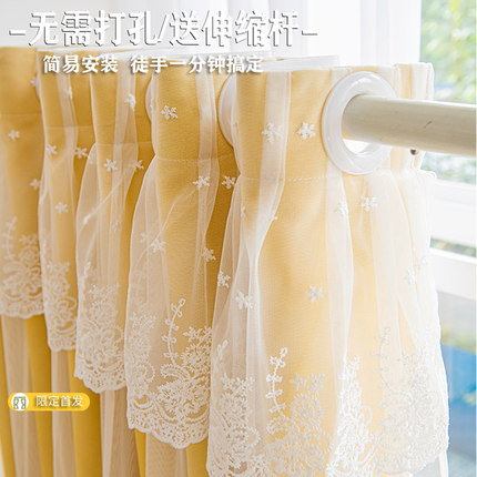 2023新款免打孔安装窗帘送伸缩杆双层蕾丝飘窗卧室布纱一体全遮光