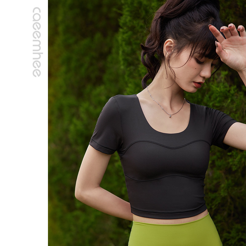 卡益瑜伽服女春夏短袖健身上衣带胸垫专业高端时尚高级感运动服女