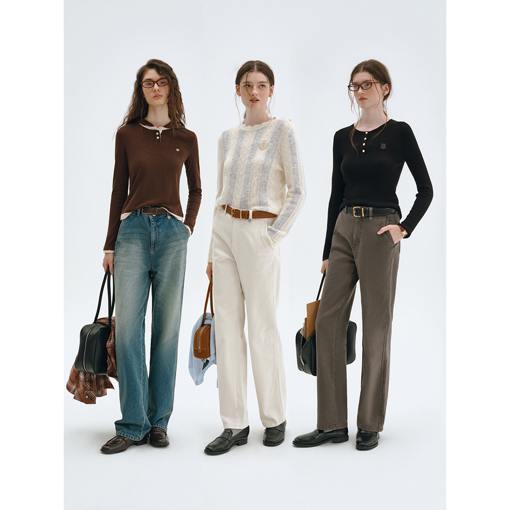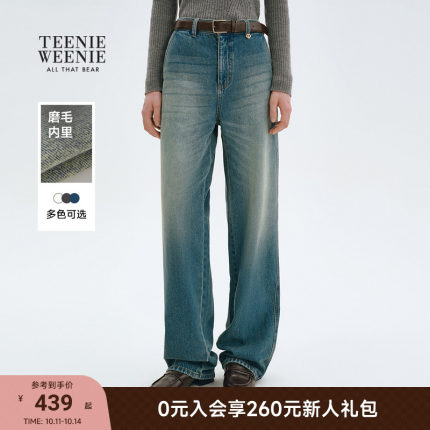 TeenieWeenie小熊女装牛仔裤2025秋季新款柔软松弛舒适水洗直筒裤