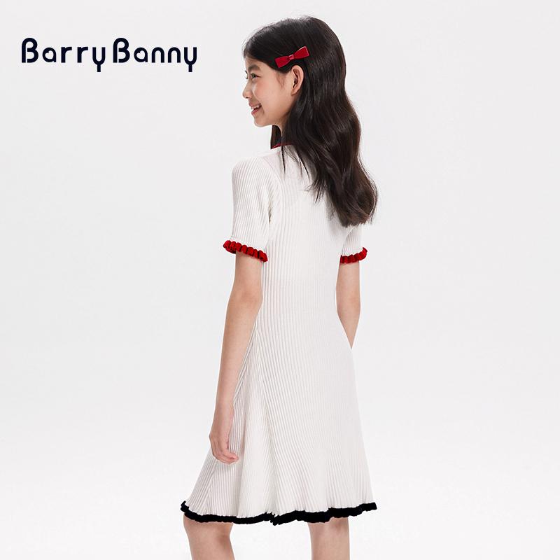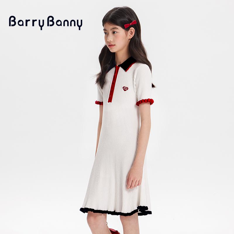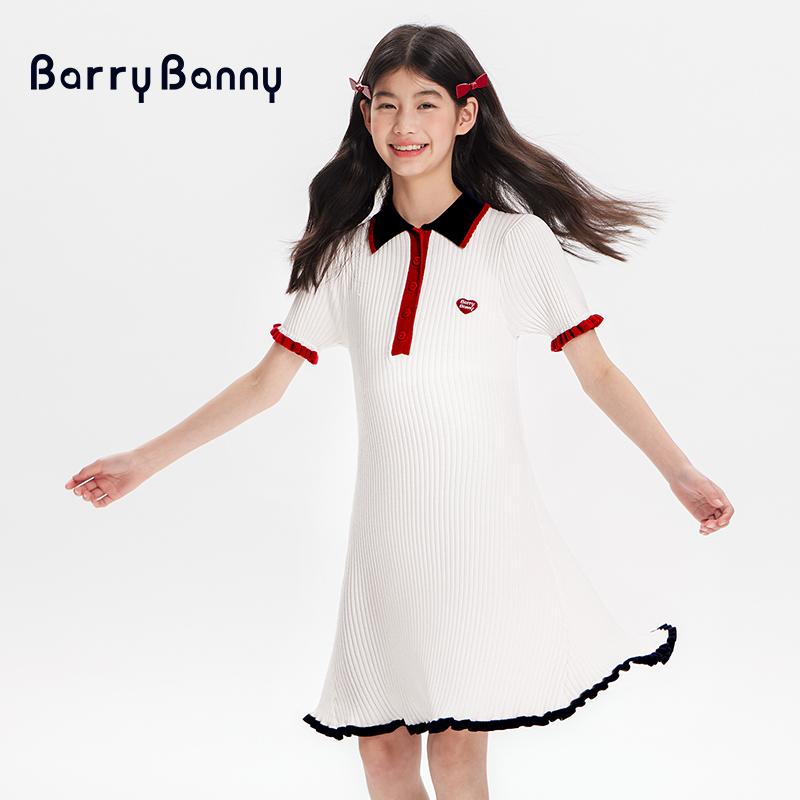BarryBanny女童连衣裙2025夏季新款儿童中大童翻领冰丝短袖POLO裙