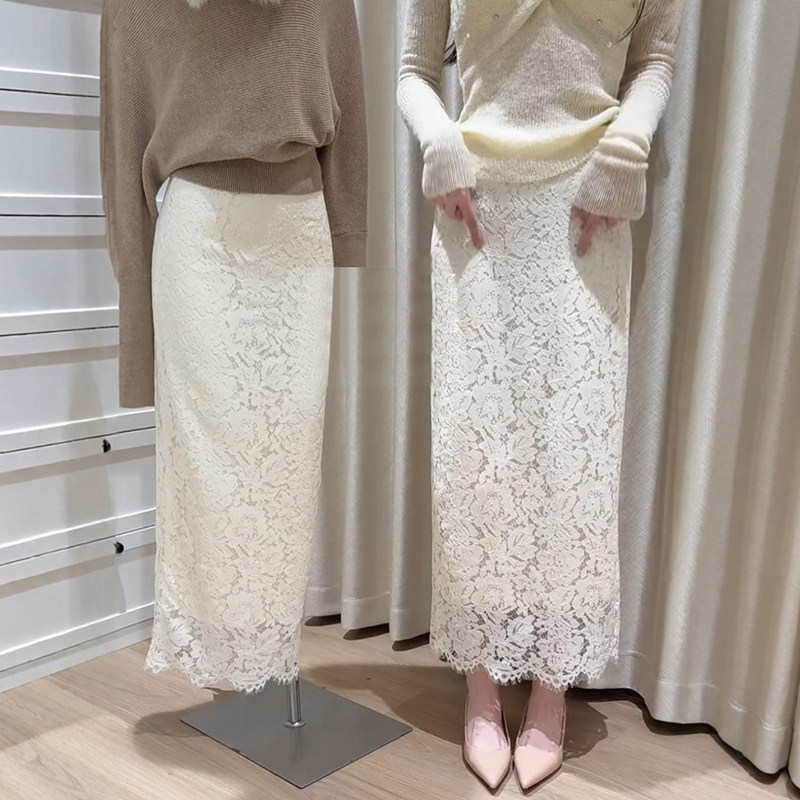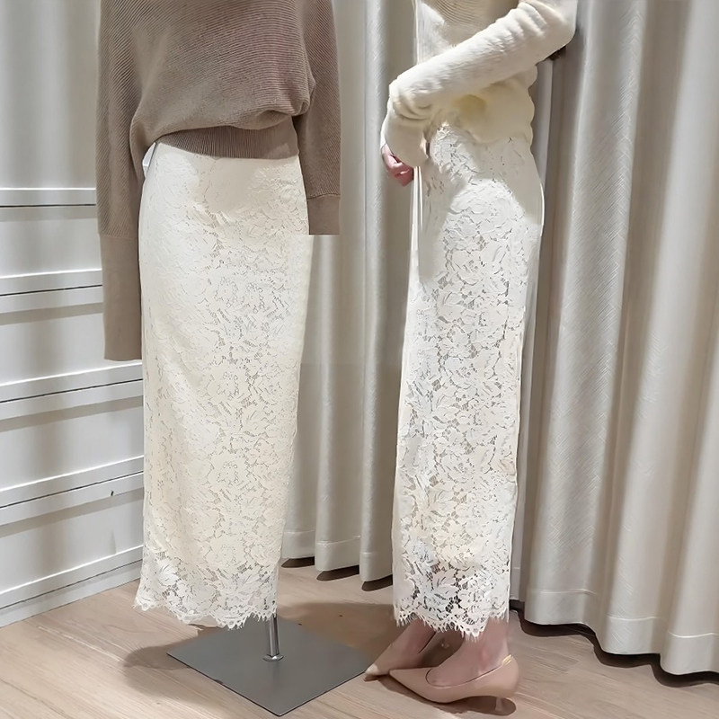 白色蕾丝半身裙大码春装女款2026年新款包臀长裙子miu里miu气半裙