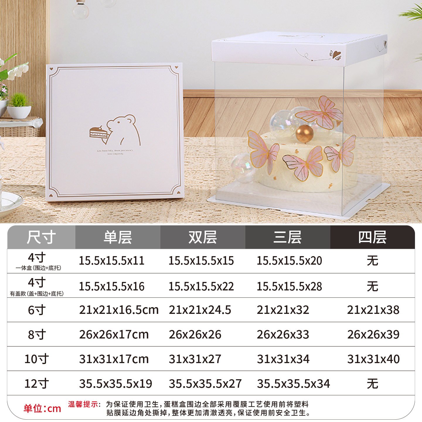 透明生日蛋糕盒四4寸6寸8寸10寸12寸单双层加高网红烘焙包装盒子