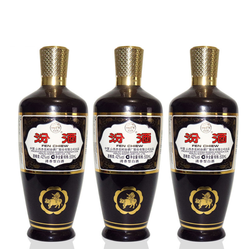 汾酒42度棕汾玻璃瓶500ml*3瓶套装山西杏花村清香型高粱粮食白酒
