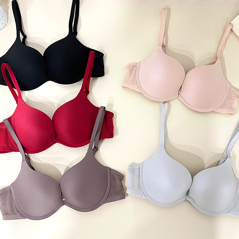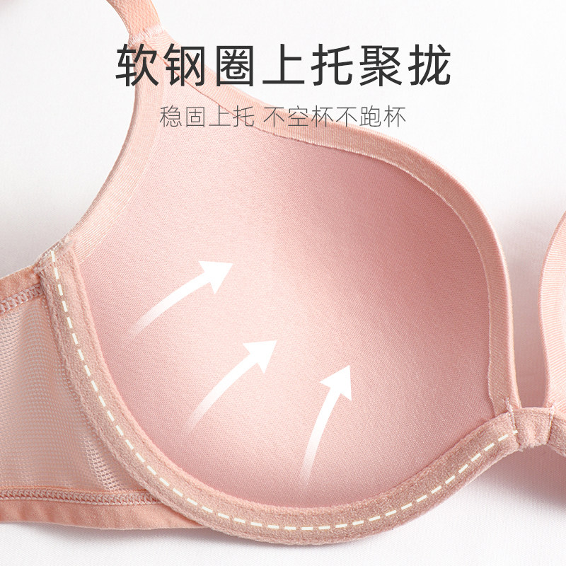 内衣女小胸聚拢显大文胸春夏薄款胸罩无痕光面软钢圈防下垂黑色