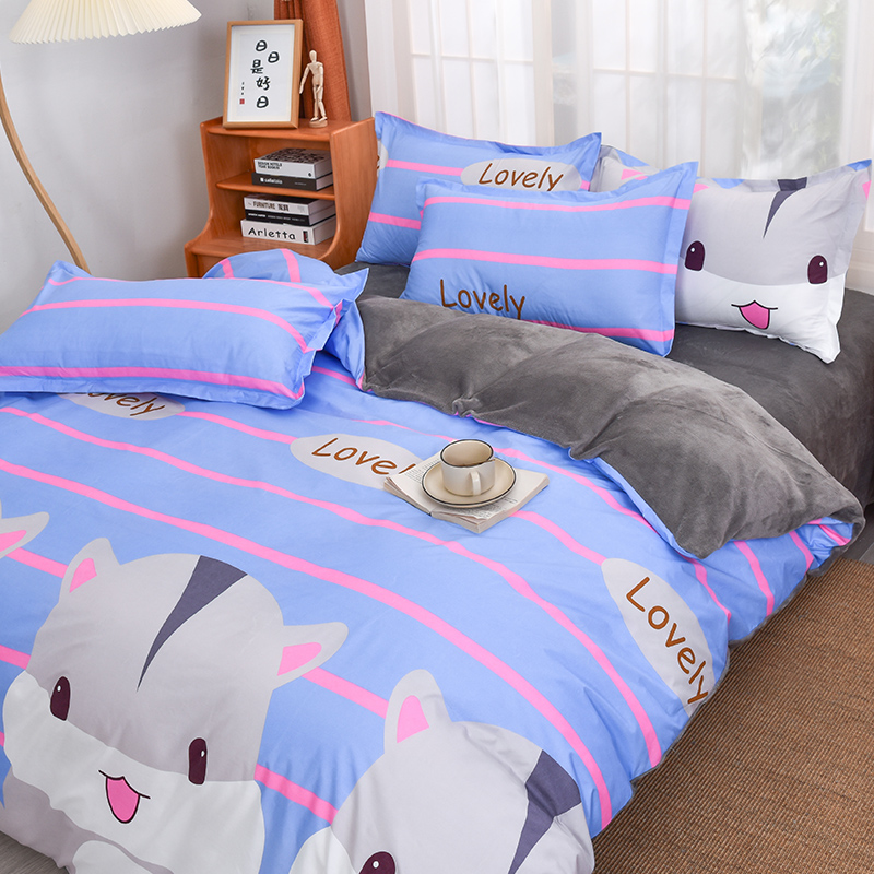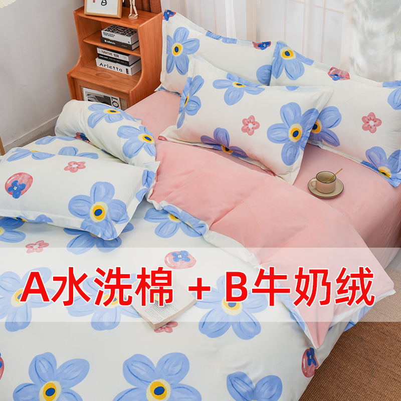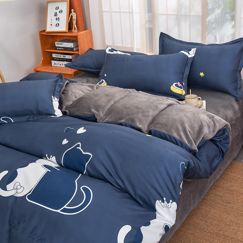 牛奶绒被套冬天珊瑚绒被罩AB双面加绒保暖四件套单人学生宿舍被单