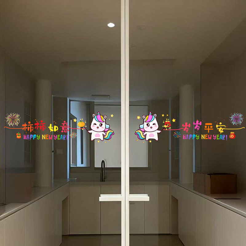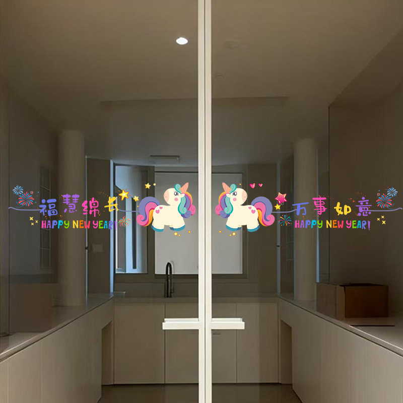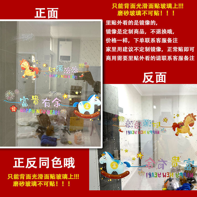 新年快乐静电贴纸店铺装饰布置马年过年春节防撞玻璃门贴窗花贴画