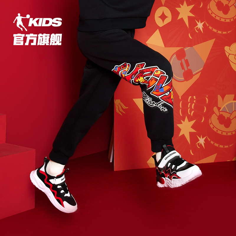 中国乔丹童装龙年男童裤子加绒冬季新年款儿童棉裤拜年服大童长裤