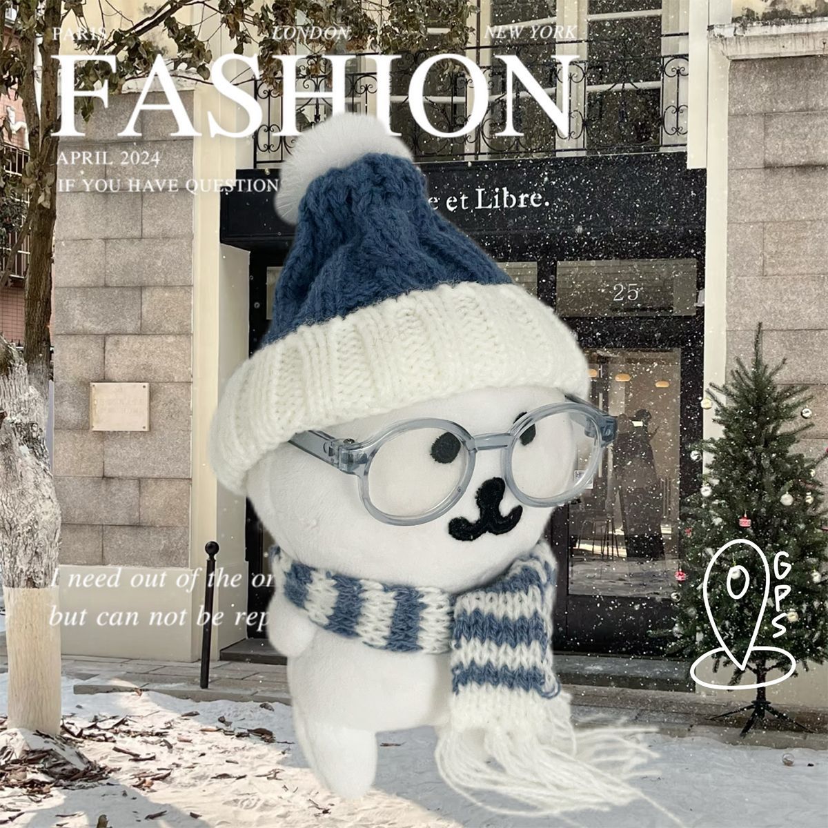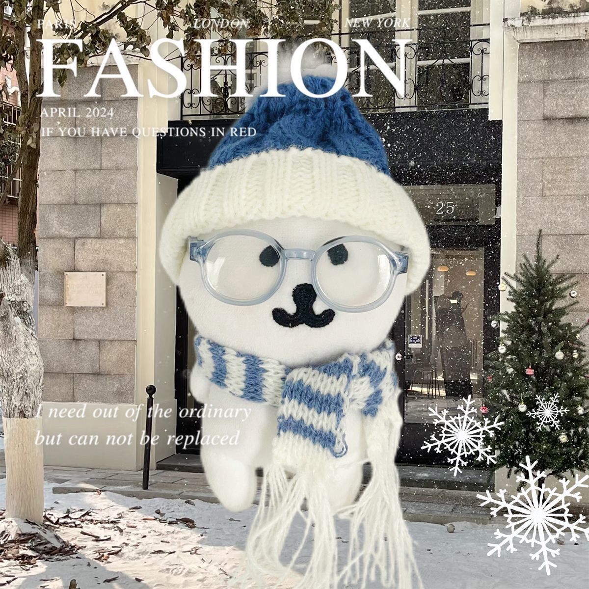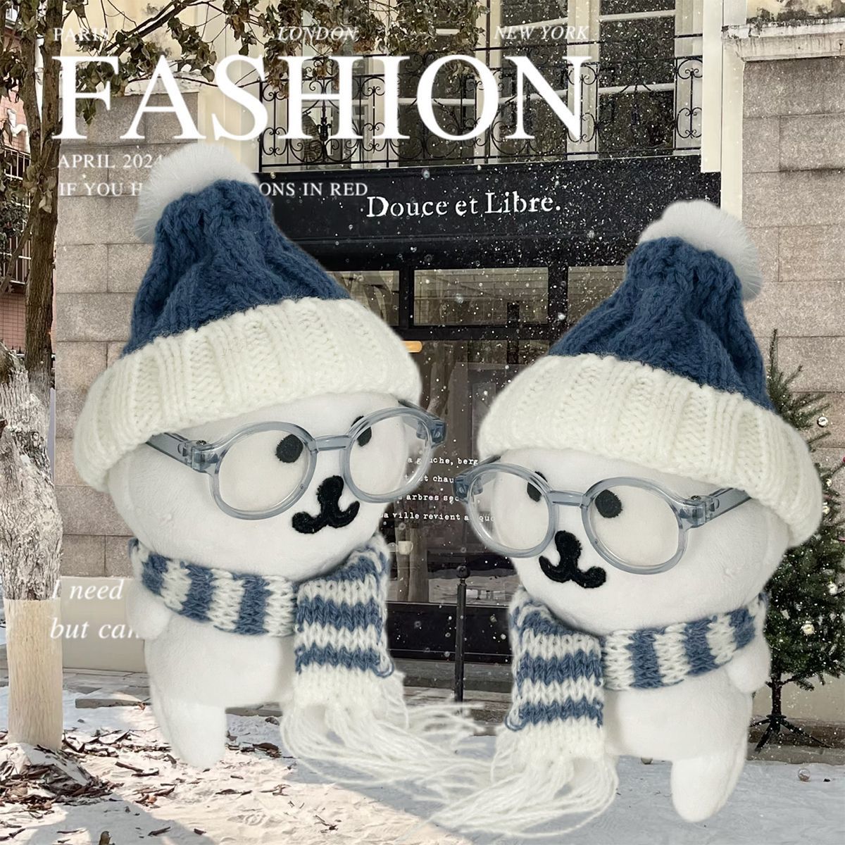 13cm自嘲熊挂件娃衣蓝色毛线帽子围巾可爱冬季娃娃围巾配饰便宜