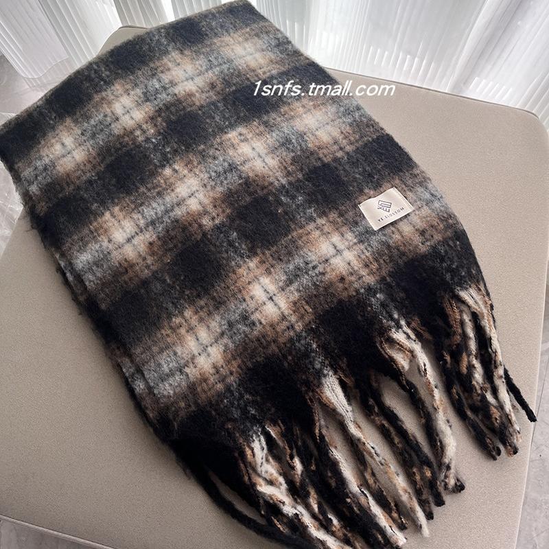 冬季新款韩系格子围巾男款礼物盒装流苏百搭加厚保暖围脖情侣款潮
