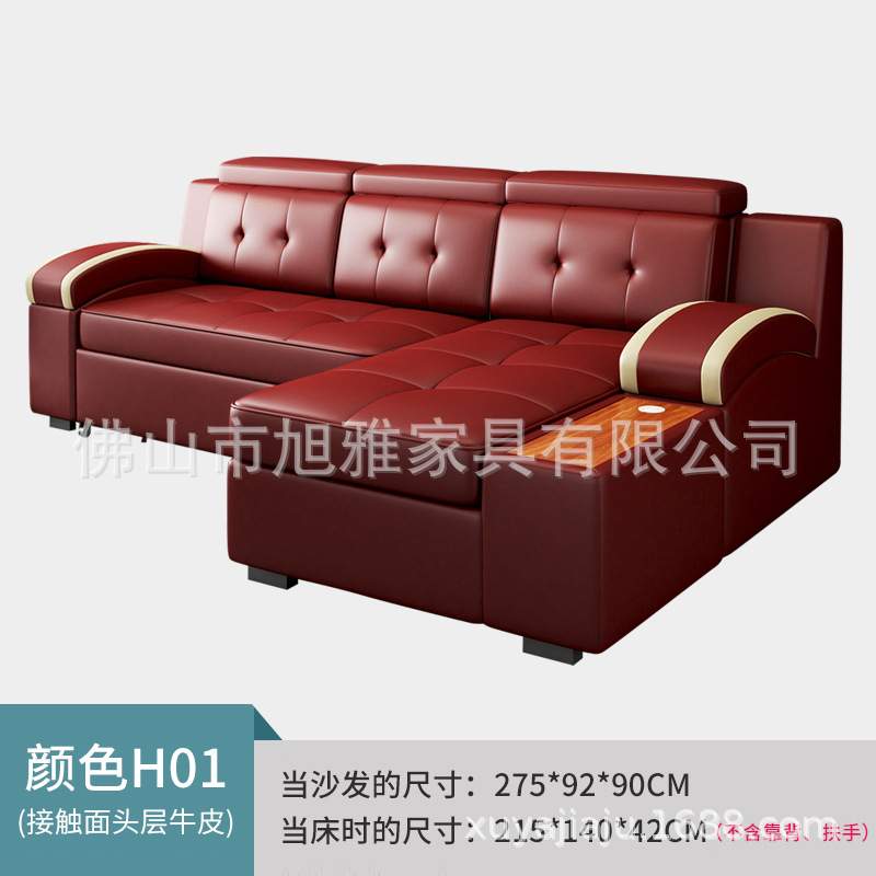L型转角沙发两用可储物现代简约中小户型客厅皮艺沙发变床组合