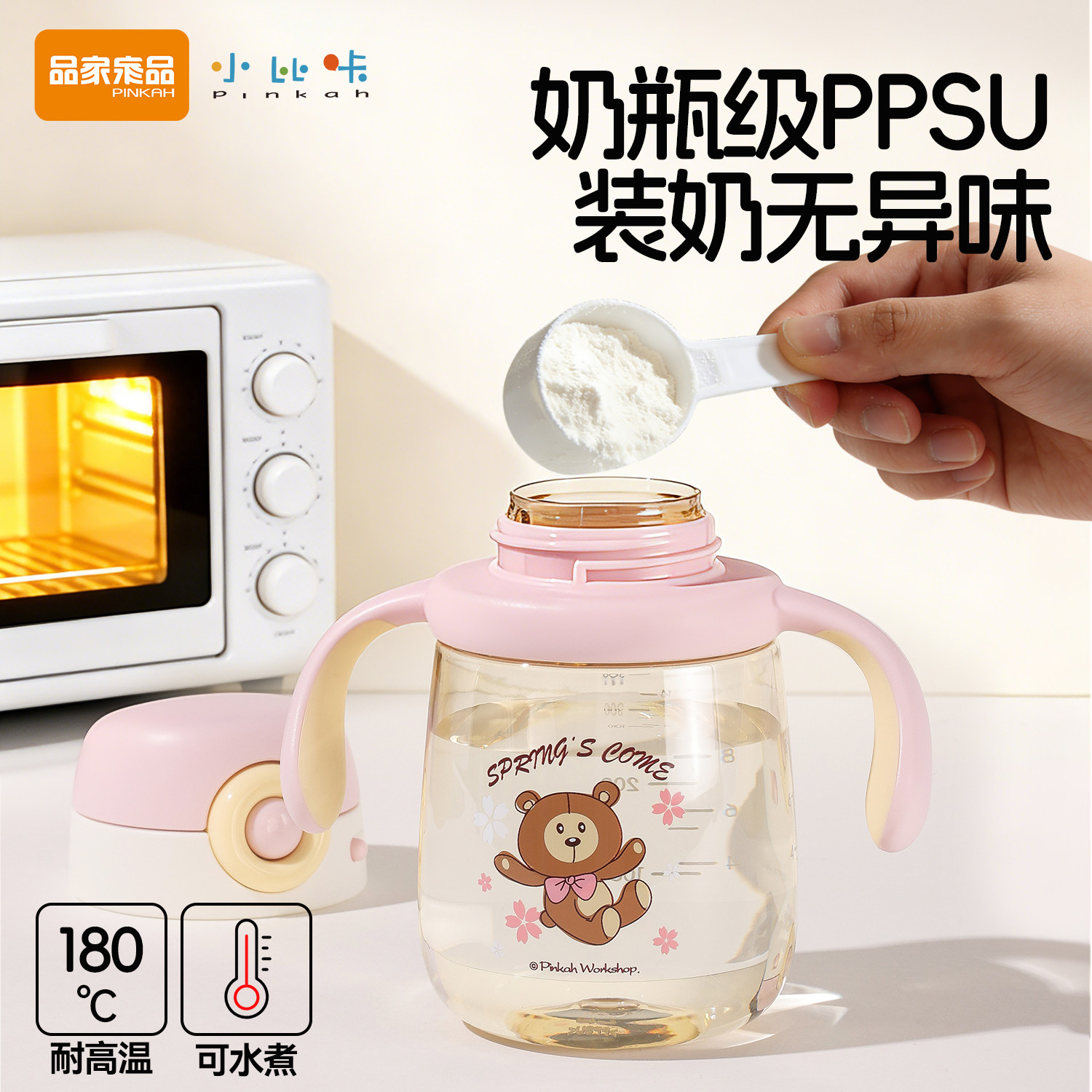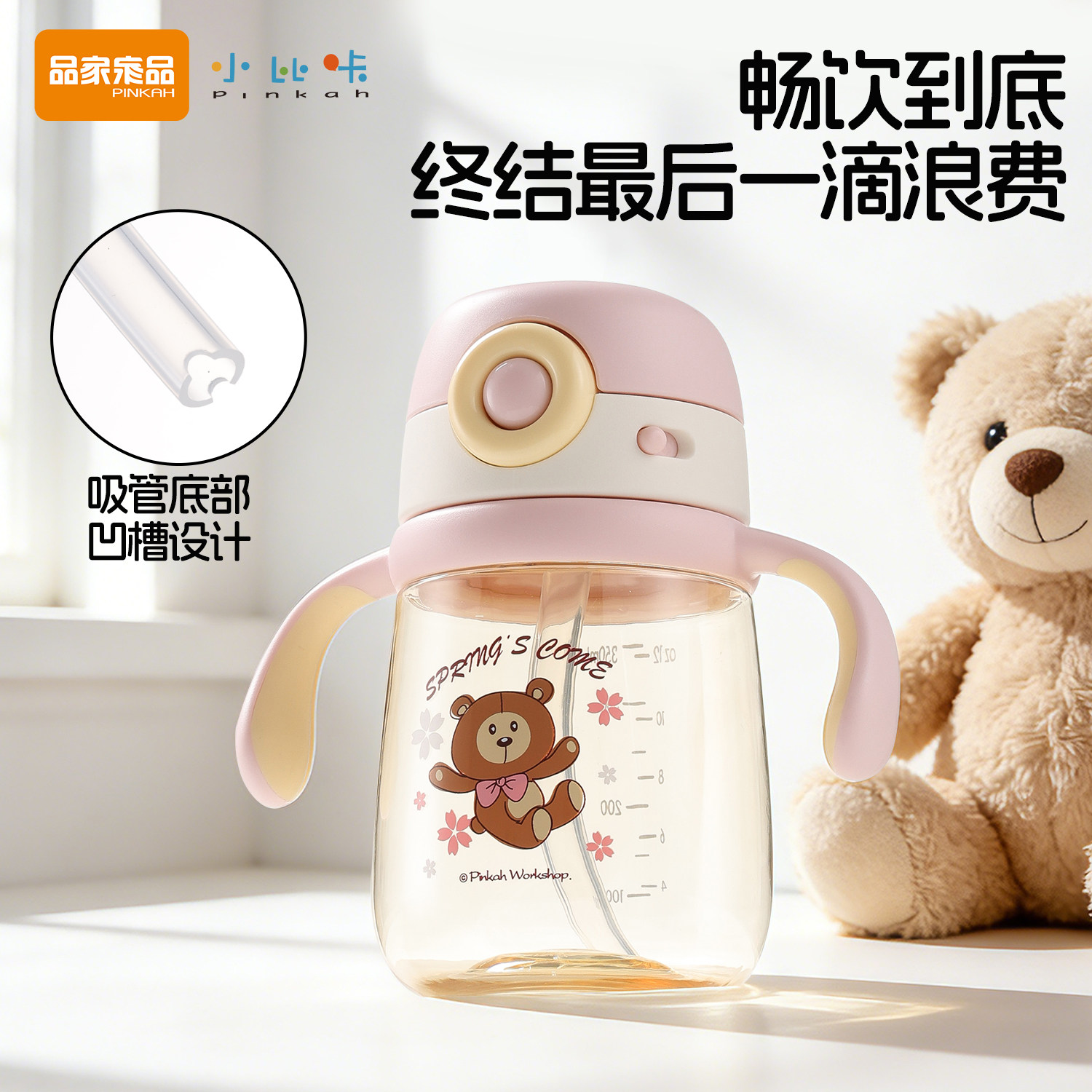 小比咔学饮杯婴儿喝水杯1岁以上宝宝防呛吸管奶瓶牛奶杯PPSU防摔