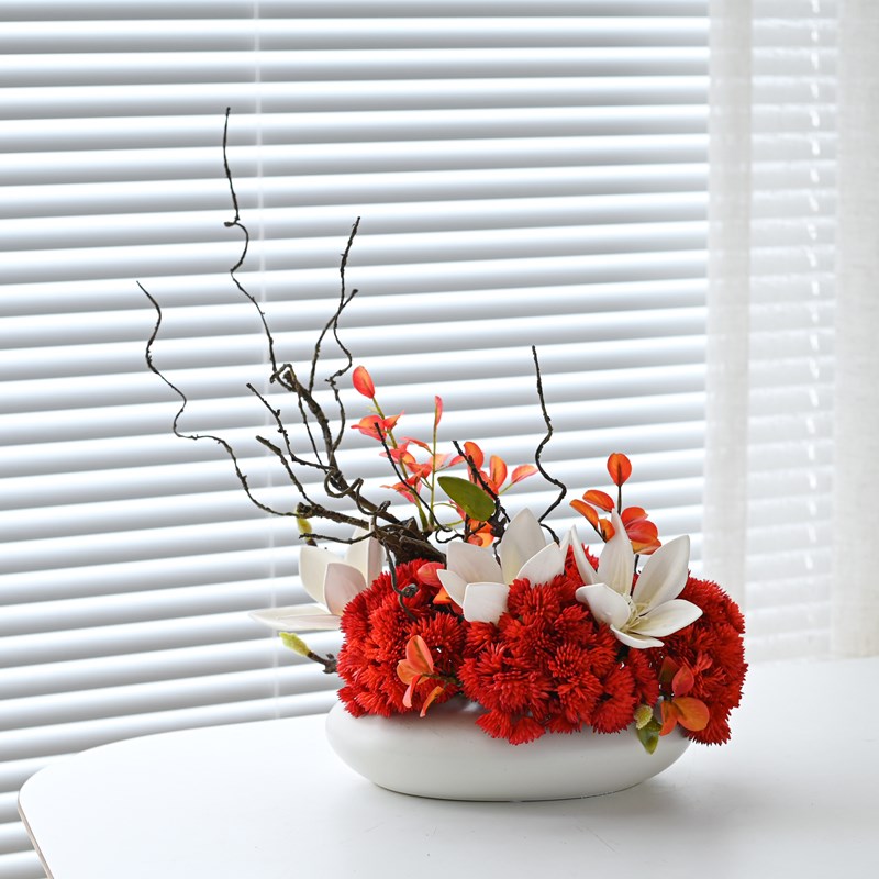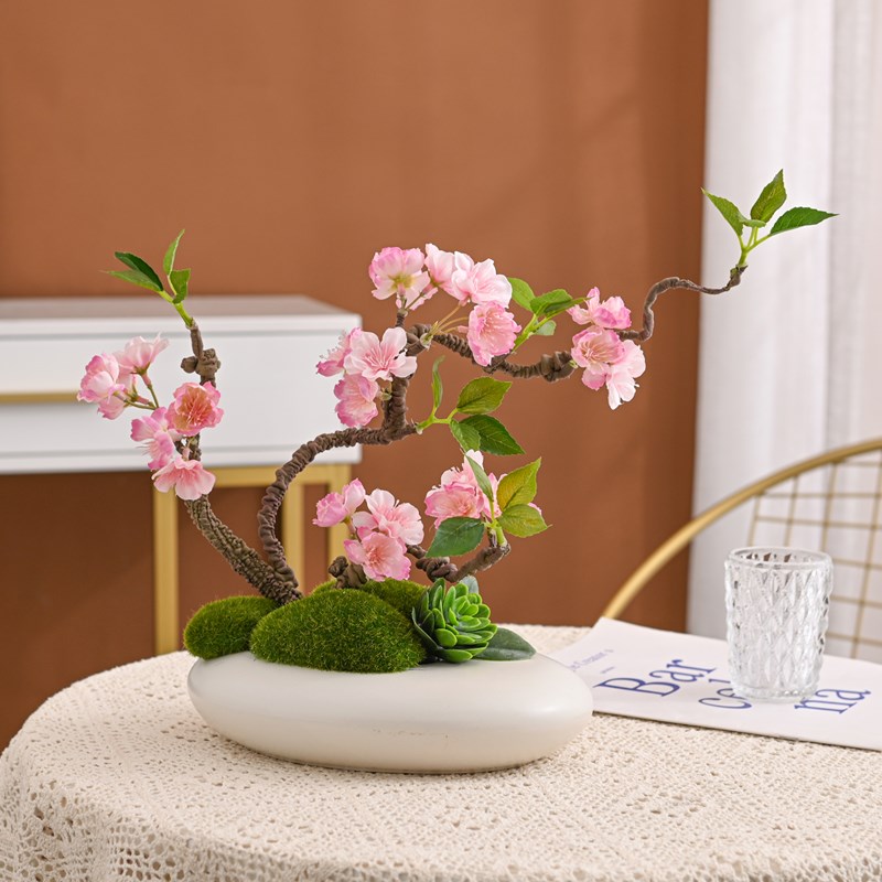 仿真花桃花艺套装摆件简约家居客厅电视柜创意装饰假花绢花摆设