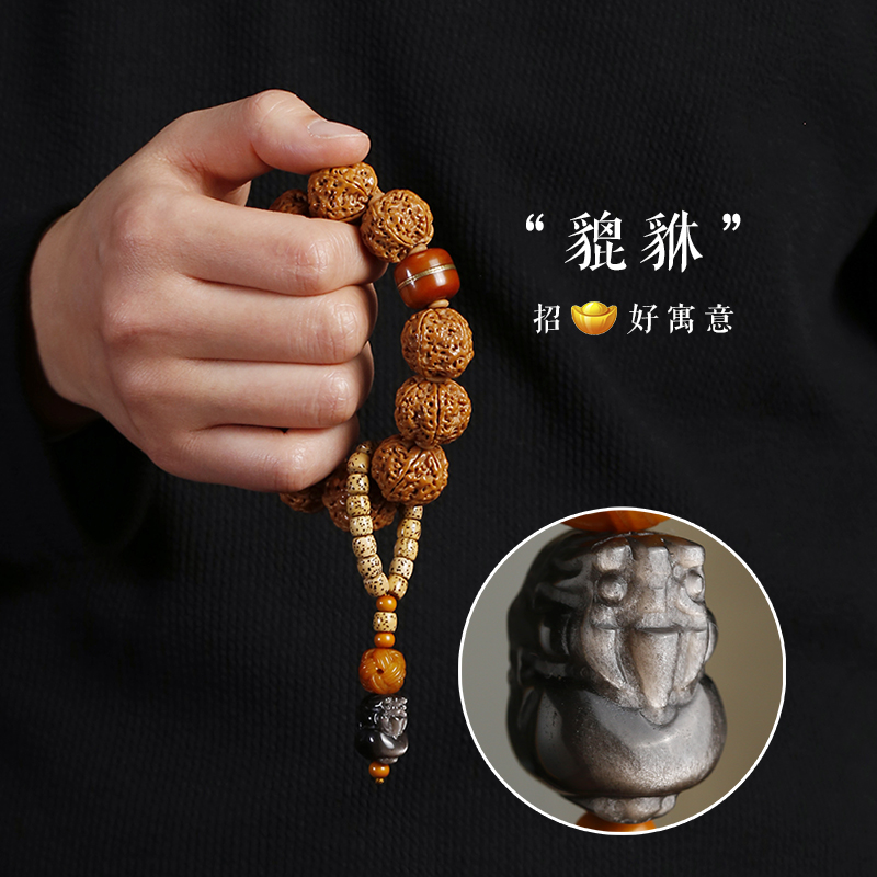 大金刚菩提子手串男盘玩佛珠手持原籽文玩配饰黑曜石貔貅星月跑环