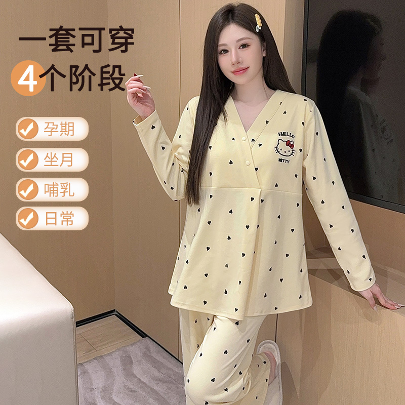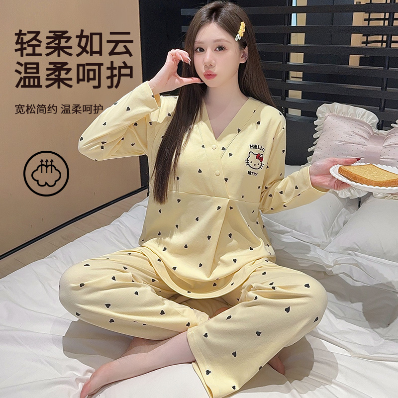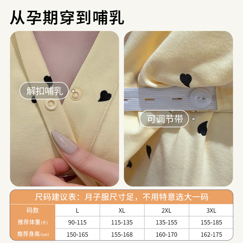 送月帽-带胸垫月子服纯棉全棉吸汗产妇哺乳睡衣秋冬季孕妇家居服