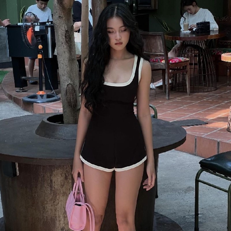 过渡性感欧美风2025撞色背心连衣裤显瘦休闲瑜伽运动连体短裤女