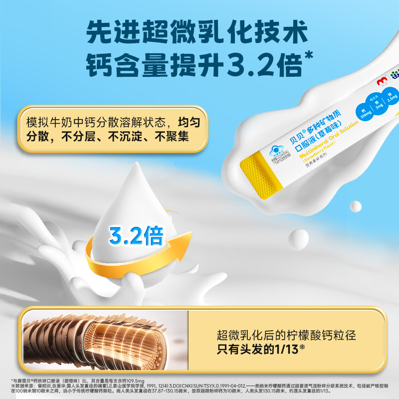 康恩贝液体钙铁锌口服液儿童成长青少年多种矿物质补钙补锌口溶液