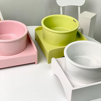 韩国BD宠物碗陶瓷大直径直筒防打翻猫狗碗护颈木架猫咪喝水食盆