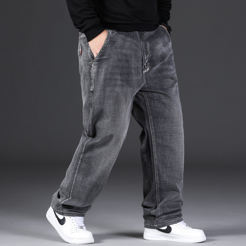 大码牛仔裤男宽松直筒加肥弹力