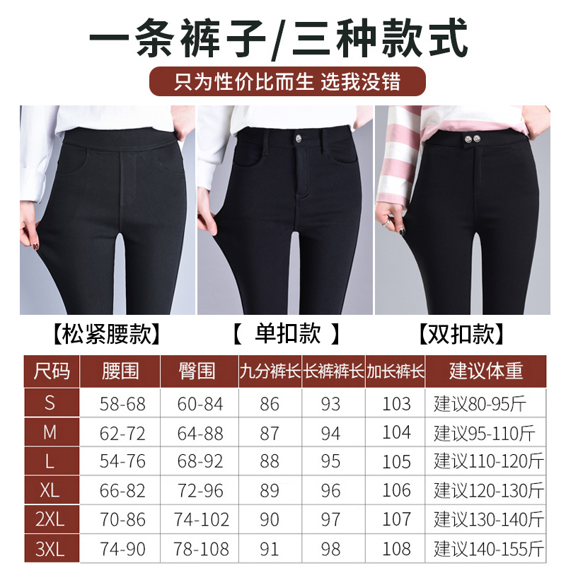 加长版打底裤女秋冬大码加绒外穿九分小脚黑色紧身高腰弹力魔术裤