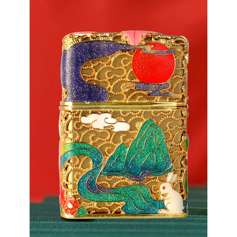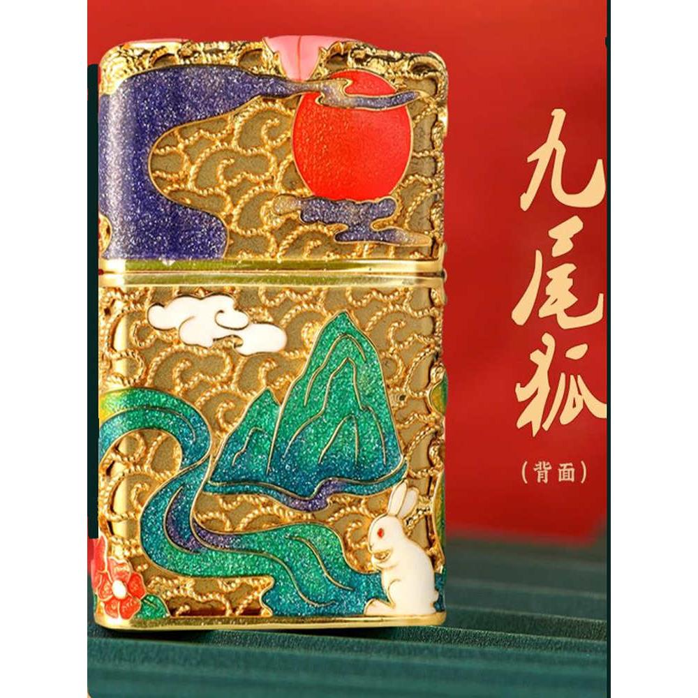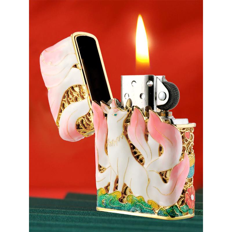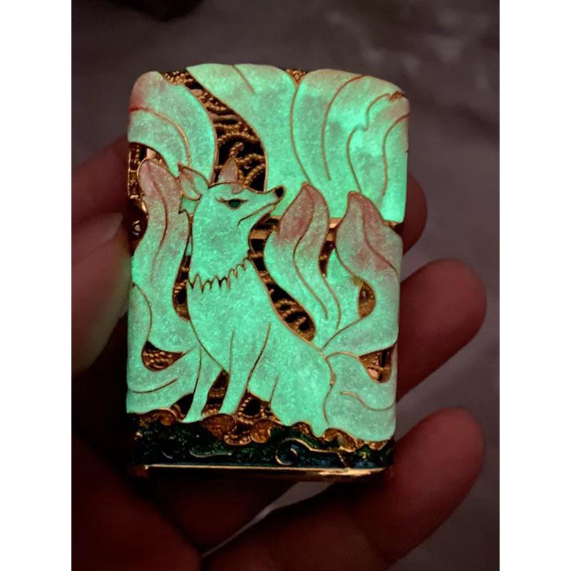 佐罗复古浮雕九尾狐夜光煤油打火机创意珐琅彩纯铜个性国潮男友礼