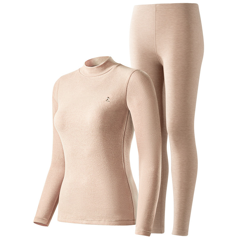 梦特娇加绒加厚羊毛半高领保暖内衣女蚕丝德绒老年人秋衣秋裤套装